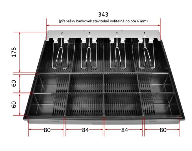 Náhradní plastový pořadač s kovovými držáky bankovek je určen pro pokladní zásuvky Virtuos C420D a C430D..