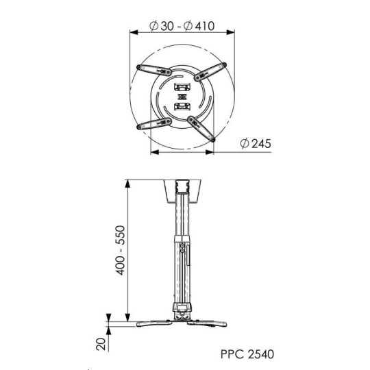 Teleskopický stropní držák na velký projektor 40-55 cm