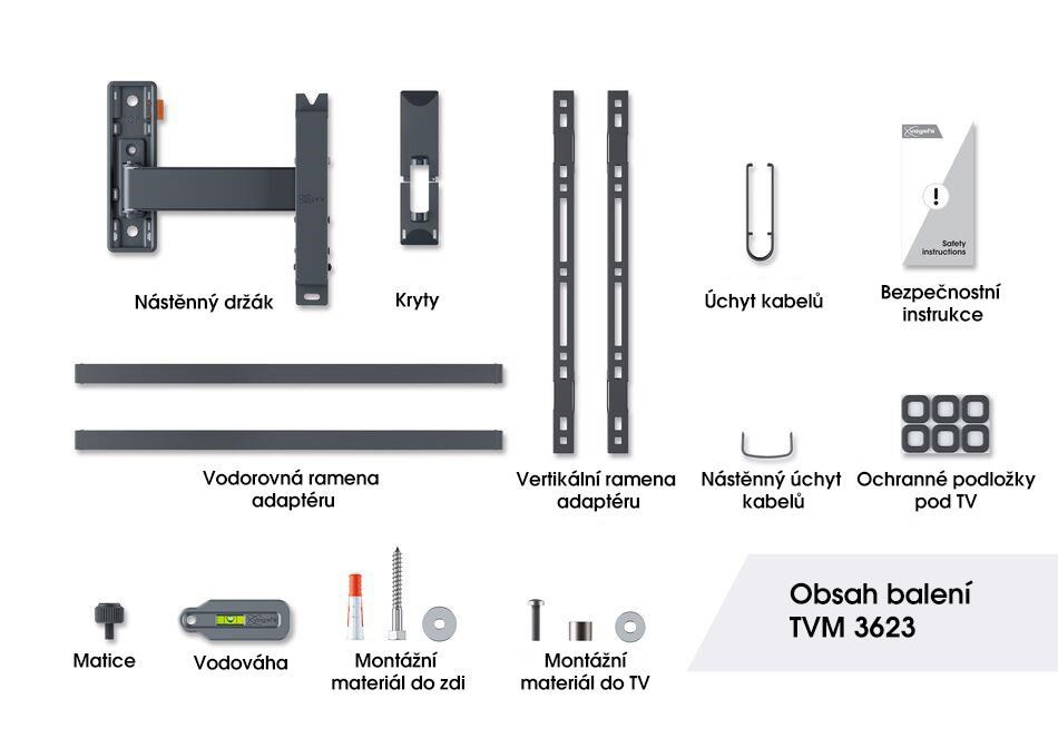 Chcete si užívat svůj velký plochý televizor bez jakýchkoli starostí. S držákem TVM 3623 řady COMFORT Full-Motion TV to dokážete. Váš televizor bude na stěně připevněn stylově a bezpečně. Nástěnný držák je speciálně navržen pro intenzivní používání s ohledem na rodiny s dětmi. Nastavení dokonalého pozorovacího úhlu? Žádný problém. Televizor můžete natočit až o 120° (záleží na šířce TV) a naklonit až o 20°. Nástěnný držák je vhodný pro televizory s úhlopříčkou 40 až 77 palců a hmotností do 35 kg.