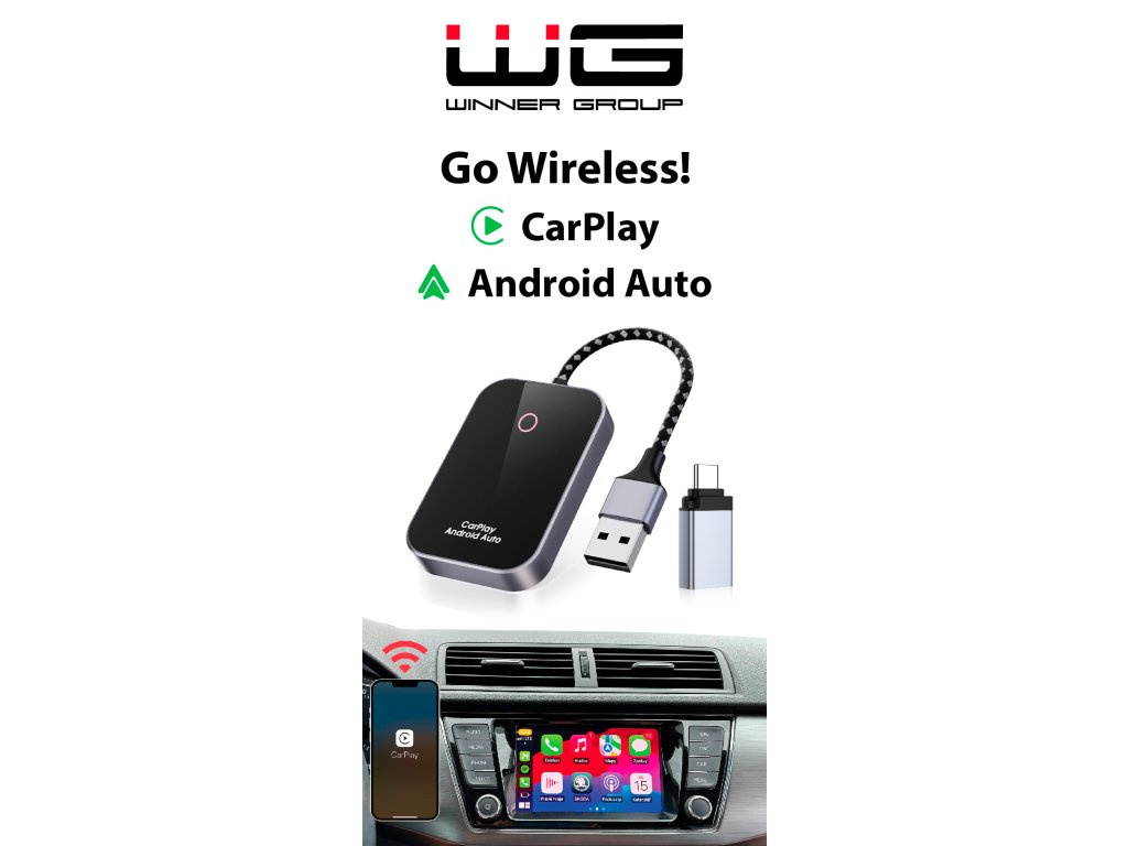 WG GoWireless! adaptér převádí vaše kabelové připojení CarPlay nebo Android Auto na bezdrátové připojení. Po připojení adaptéru do USB portu vašeho vozidla stačí pouze zapnout Wi-Fi na vašem mobilním zařízení a připojit se k vozidlu bez nutnosti kabelového propojení. Užijte si pohodlí a bezproblémovou navigaci, hudbu a hands-free hovory – vše bez zbytečného zamotávání kabelů.