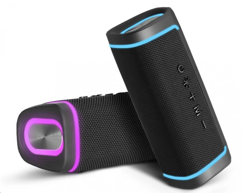 Reproduktor je také opatřen barevnými LED kontrolkami, které stylově pulzují a reagují na hudbu.
