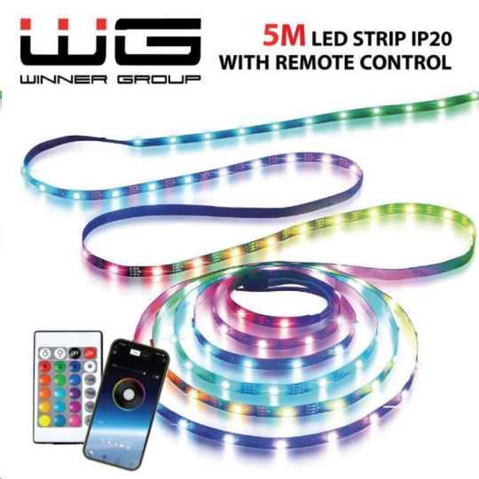WG - Chytrý LED pásek WG17, 5 metrů, s ovladačem i aplikaci, IP 20, se síťovým adaptérem