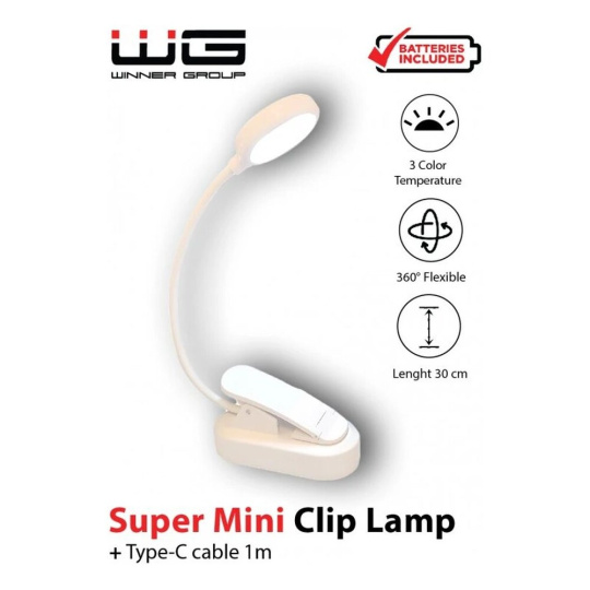 WG LED lampička s klipem na čtení bílá