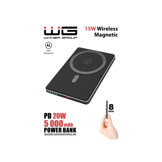WG - Power Bank 5000 mAh, bezdrátová 15W + PD 20W, černá