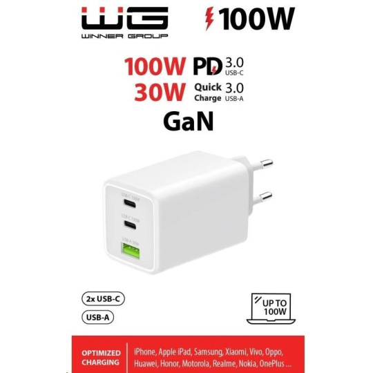 WG - Síťová nabíječka GaN 100W, 3x USB, 1x USB-A + 2x USB-C, white