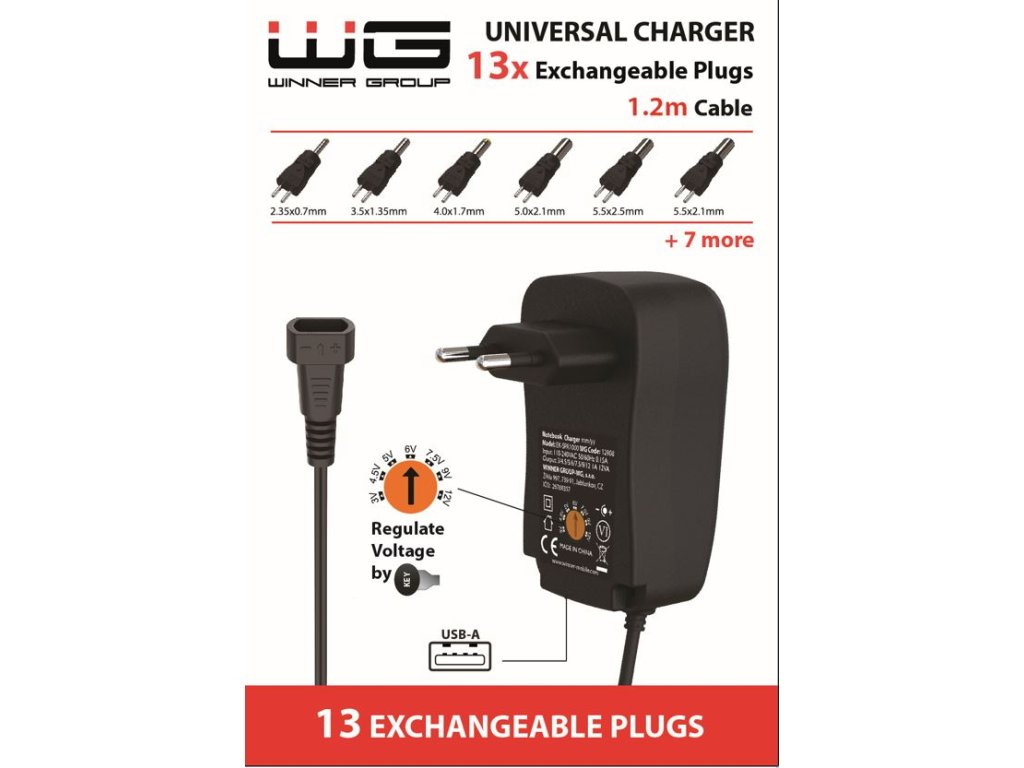 WG - Univerzální nabíječka s 13 adaptéry, černá