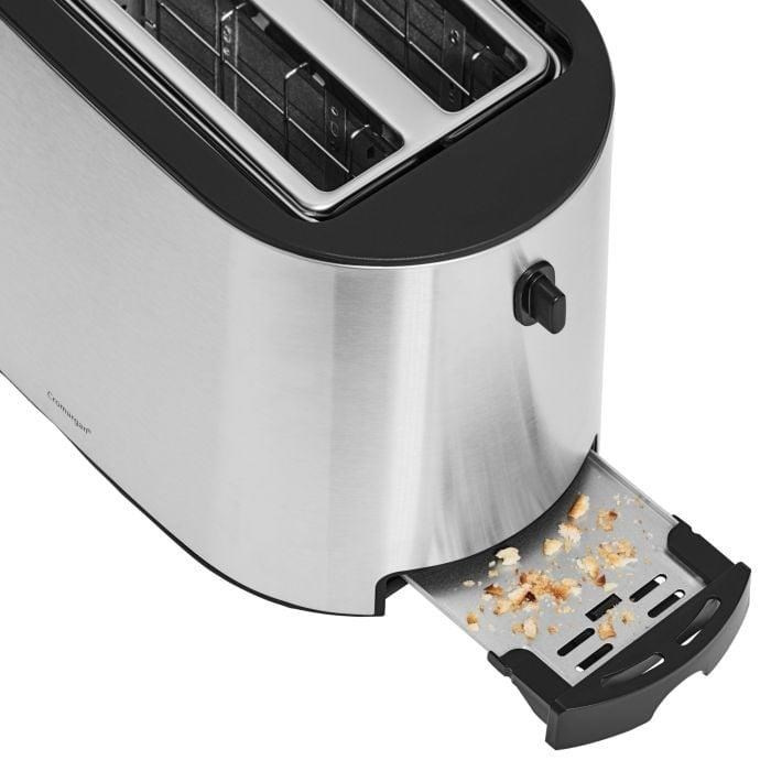 Podsvícená tlačítka nabízejí topinkovač, jehož používání nemůže být jednodušší, s funkcemi Zrušit, Ohřát/opéct a Rozmrazit, zatímco vyjímatelný tácek na drobky pomáhá udržovat vaši kuchyni bez poskvrnky. To vše v sofistikovaném a poutavém těle zhotoveném z odolné nerezové oceli Cromargan® 18/10, která zaručuje výjimečnou odolnost a stylový matný povrch, jenž nikdy nezklame.