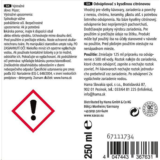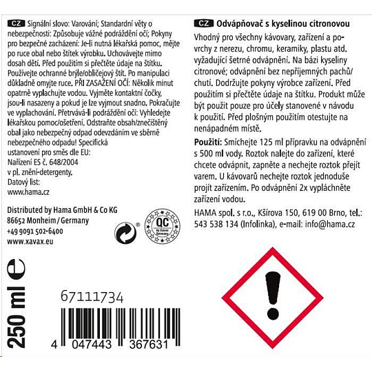Xavax přípravek pro rychlé odvápnění, 250 ml