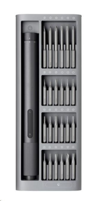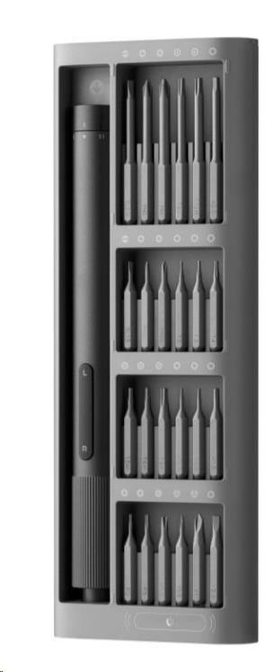 • Obsah balení: 1x šroubovák, 1x pouzdro, 24x šroubovací bit, 1x nabíjecí kabel typu C, 1x manuál