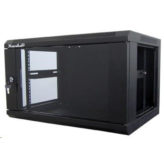 XtendLan 19" nástěnný rozvaděč 9U 600x450, nosnost 60 kg, skleněné kouřové dveře, svařovaný, černý