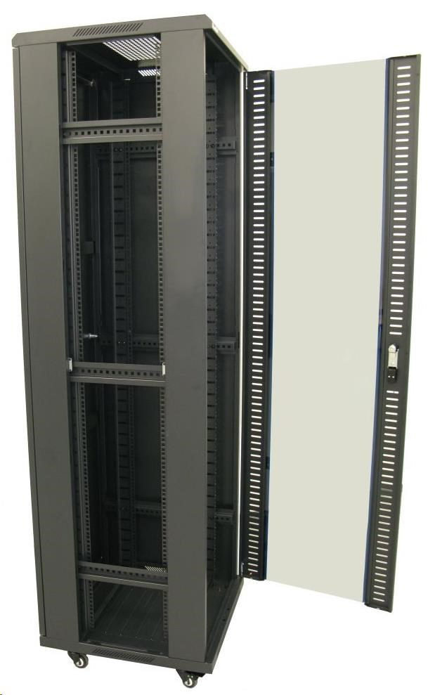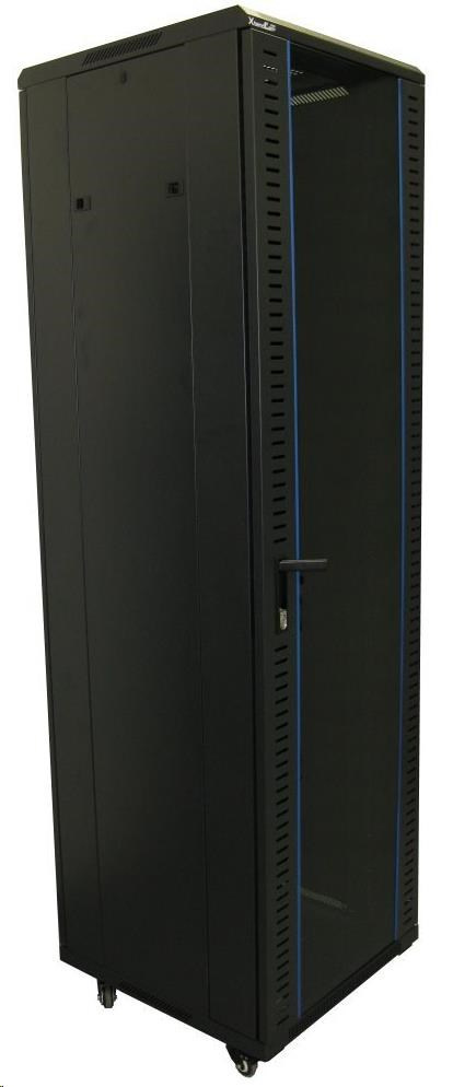 XtendLan 19" stojanový rozvaděč 42U 600x800, nosnost 800kg, skleněné dveře, plná záda, kolečka,černý