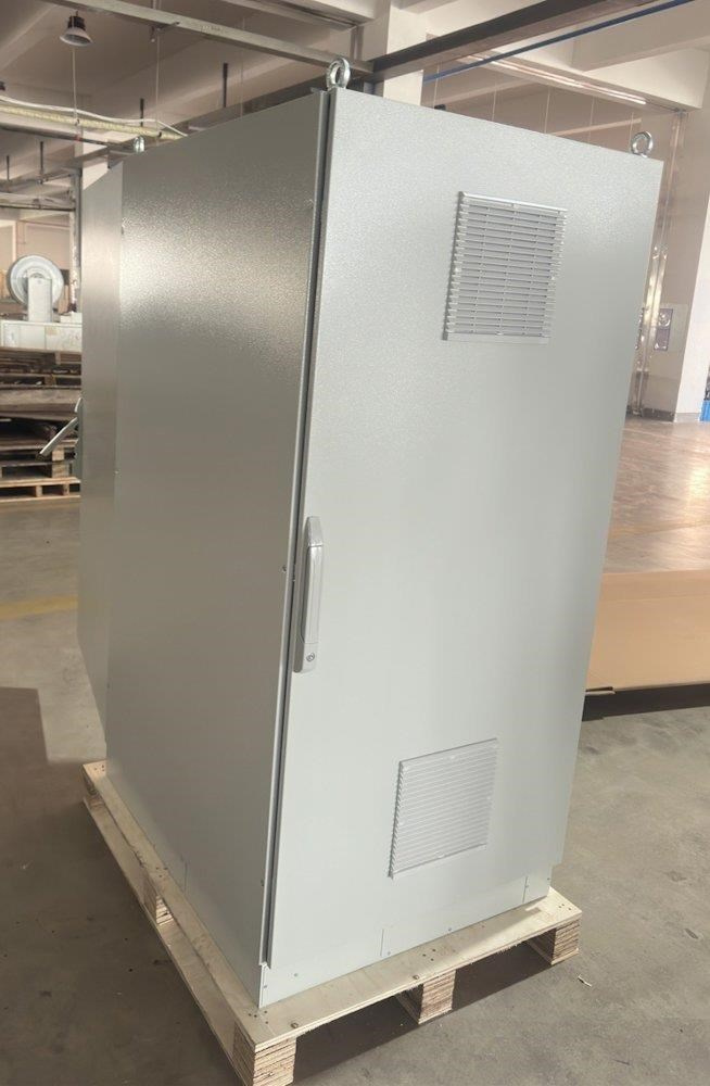 Rozvaděč pro instalaci datových a telekomunikačních zařízení, ventilace s termostatem, podstavec, šedý.