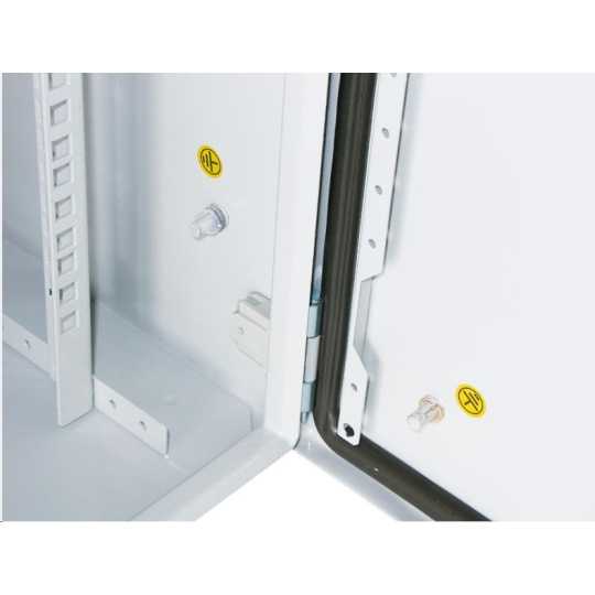 Venkovní nástěnný rozvaděč vyrobený z válcované oceli o tloušťce 1,5 mm. Třívrstvá povrchová úprava. Provedení: dveře - plné, otevíratelné o 110°, zaměnitelný směr otevírání, těsnění z pěnového polyuretanu zádní kryt - plný boční kryt - plný horní kryt - plný