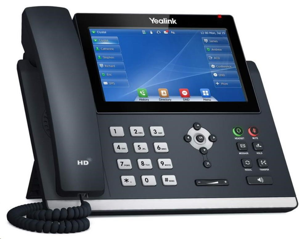 Yealik T43U je vybaven 7" dotykovou barevnou obrazovkou s rozlišením 800 x 480 pixelů. Atraktivní čistý design s kovovou lištou sluší každé moderní kanceláři. Telefon Yealink SIP-T48U disponuje 16 SIP účty a dvěma 1 Gbs ethernetovými porty s podporou PoE . Nabízí 29 programovatelných dotykových DSS kláves, kterým lze přiřadit mnoho různých funkcí. Telefon disponuje také barevnou indikací, barevně posvětlenými tlačítky (hlasitý odposlech, sluchátka, ztlumený mikrofon). Podporuje také až 3-cestnou skupinovou konferenci a díky podpoře EHS k němu snadno připojíte bezdrátová sluchátka.