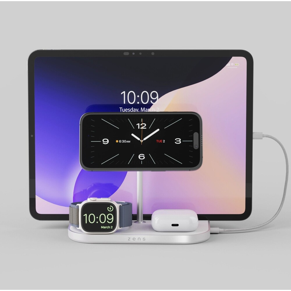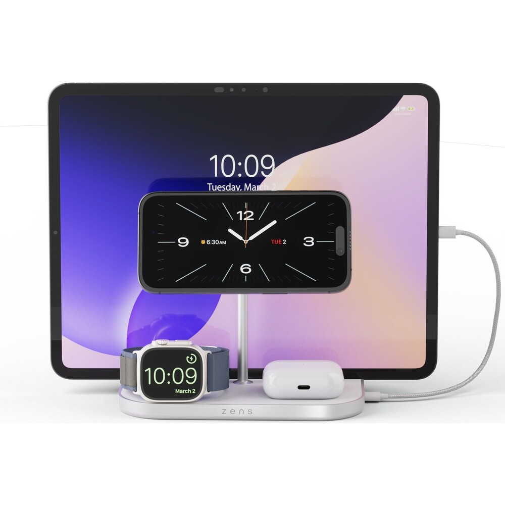 ZENS 4-in-1 MagSafe/Qi2 4v1 nabíjecí stanice (60W) stříbrná